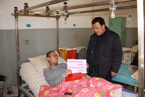 ??? 在重癥監(jiān)護室搶救治療期間,醫(yī)療費高達18萬余元,這對一個工薪家庭來說是一個巨大的數(shù)字和沉重的壓力。面對此種情況,公司領導沖上前去,八方協(xié)調:侯可斌總經(jīng)理在小郭入院當晚,不僅結算了前期的檢查治療費用,還墊付了10000元現(xiàn)金為小郭辦理了住院手續(xù);組織全體員工為小郭捐款10410元;經(jīng)公司申請、集團工會委員會研究、侯秀峰董事長批準,從集團互助金中拿出10000元對小郭進行救助。